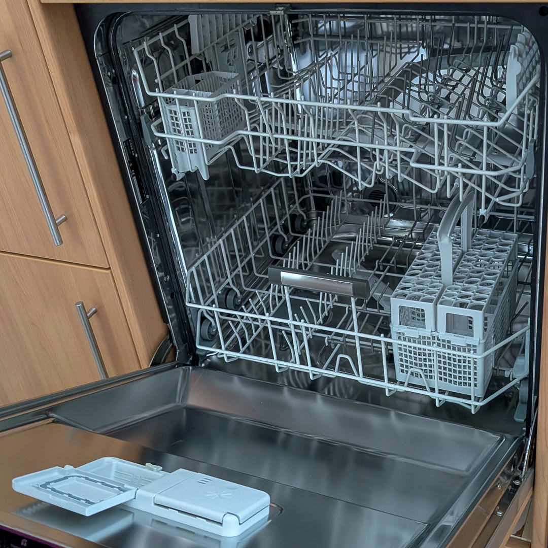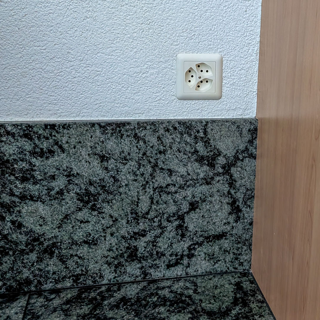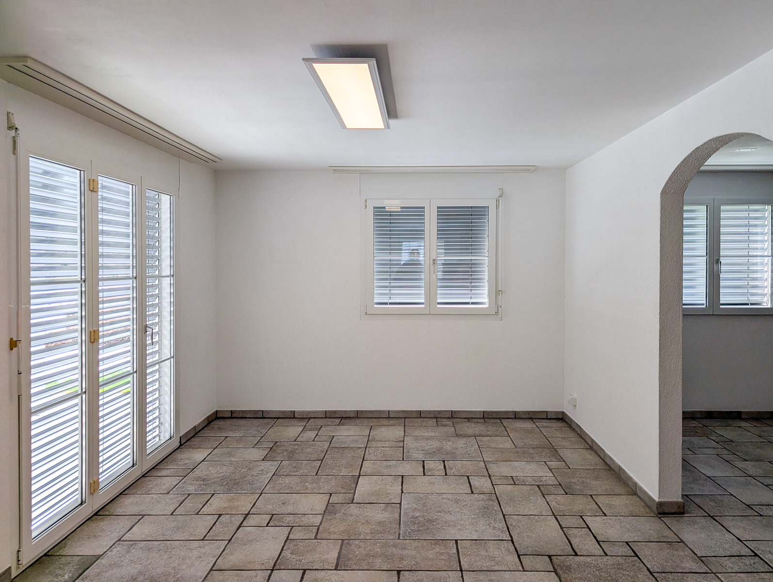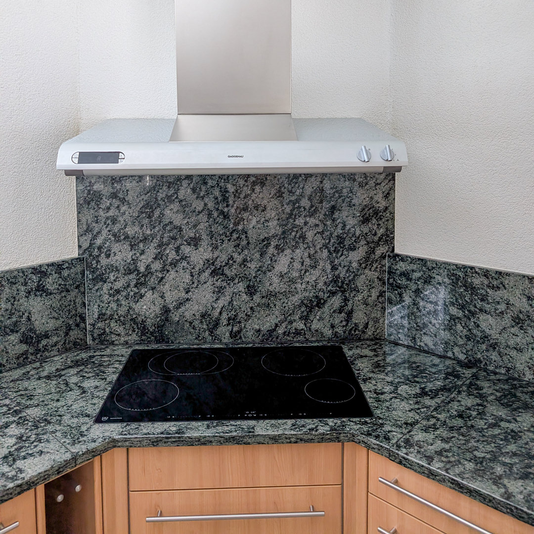 Die 14 m² grosse Küche überzeugt durch ihre durchdachte Konzeption und hochwertige Materialien. Die edlen Porzellan-Bodenplatten unterstreichen den exklusiven Charakter und bieten zugleich höchste Pflegeleichtigkeit.